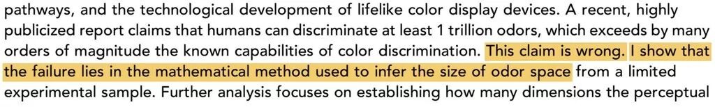 Markus指出Andreas Keller(洛克菲勒大学教授)关于嗅觉编码理论的文章出现了数学方法的误用。(On the dimensionality of odor space,Meister, eLife, 2015)