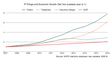在政策鼓励下,中国专利申请数量在过去十余年快速增长