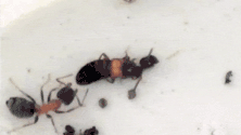 隐翅虫用防御性腺体击退了来犯的蚂蚁。图片来源:参考文献[4]