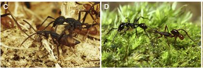分别和他们的宿主在一起的两种隐翅虫,你能看出哪只是“伪蚂蚁”嘛?图片来源:参考文献[1]