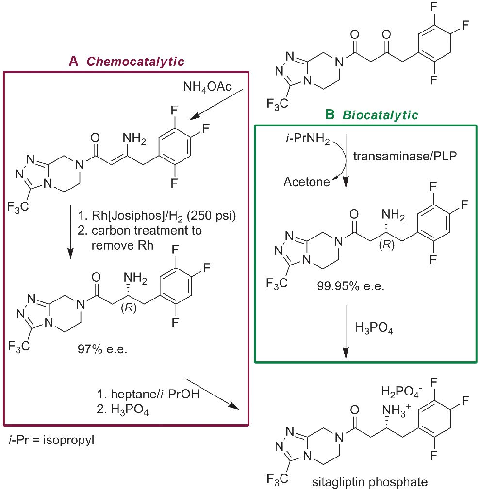 [8] Savile CK,Janey JM,Mundorff EC,Moore JC,Tam S,Jarvis WR,Colbeck JC,Krebber A,Fleitz FJ,Brands J,Devine PN,Huisman GW,Hughes GJ. Biocatalytic asymmetric synthesis of chiral amines from ketones applied to sitagliptin manufacture. Science,2010,329,305–309.