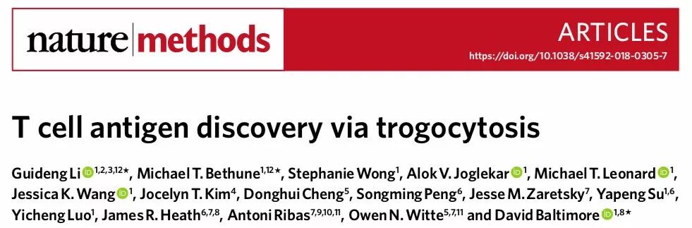 1. Li, G. et al. T cell antigen discovery via trigocytosis. Nature Methods. 16, 182-190