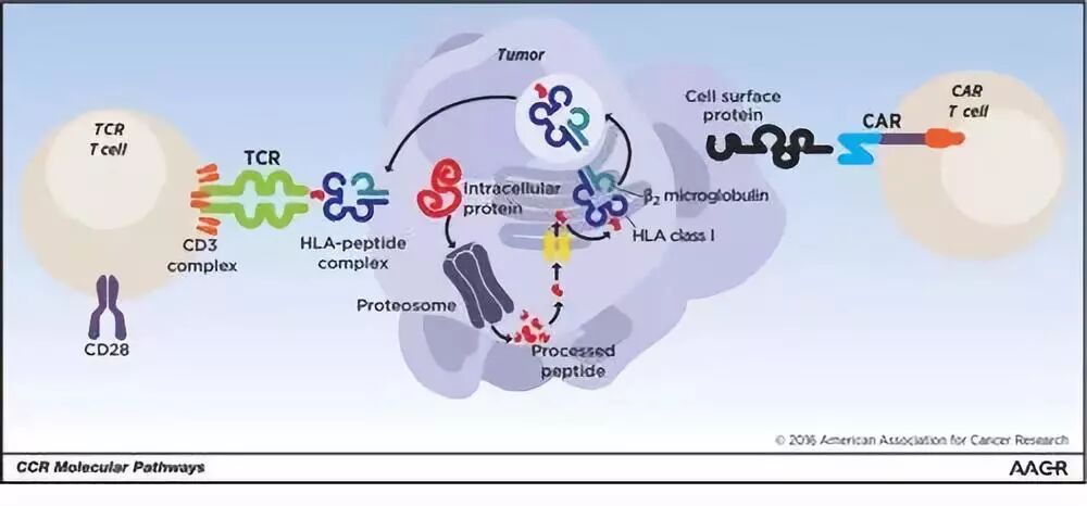 TCRs和CARs通过不同的机制识别肿瘤细胞